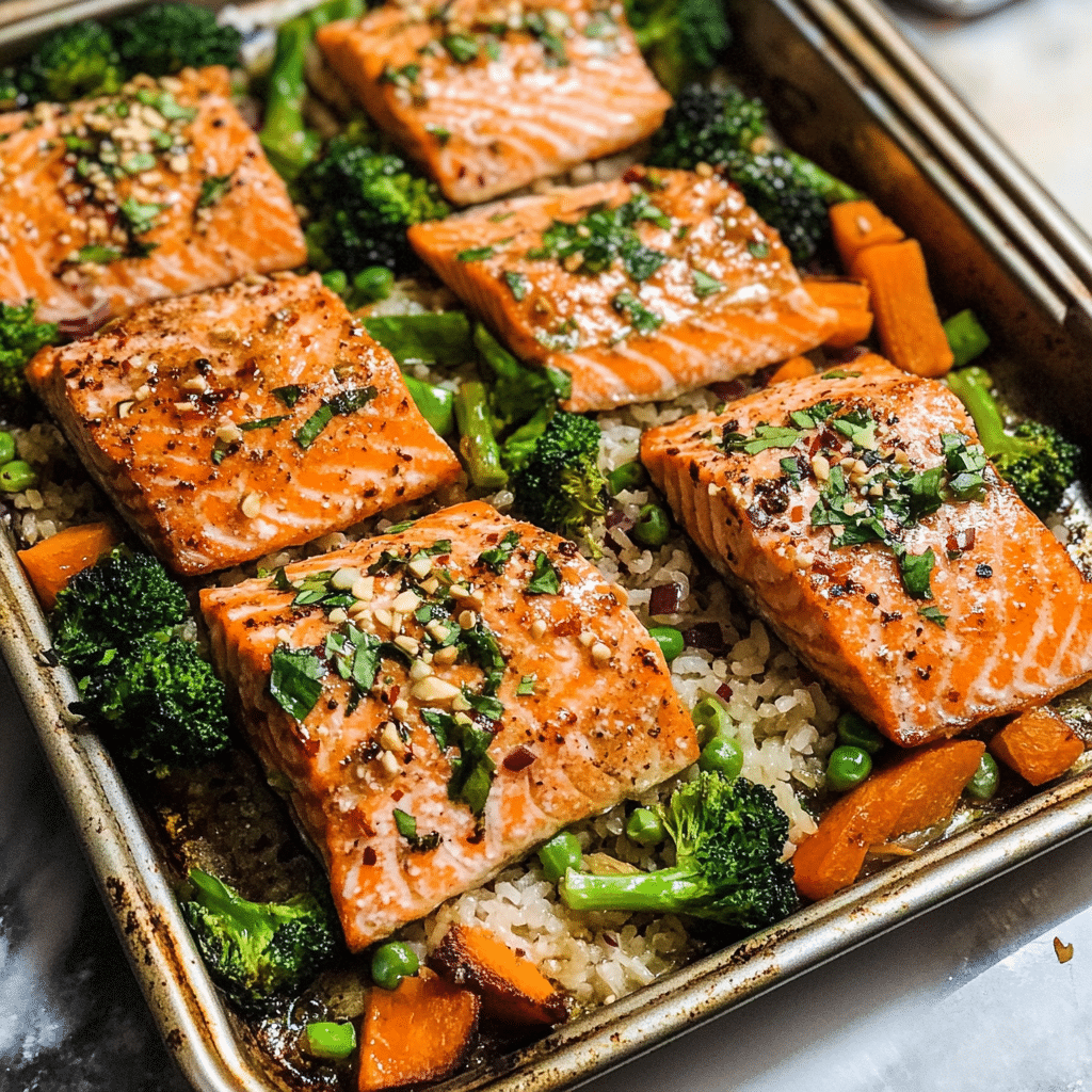 The beauty of this dish lies in its simplicity and versatility. Whether you’re serving it for a quick weeknight dinner or looking for something impressive to serve at a gathering, it hits all the right notes. The freshness of the veggies, combined with the rich, savory salmon, creates a perfectly balanced meal that’s both satisfying and nutritious. Plus, with minimal prep and just one sheet pan to clean, it’s ideal for cooks of any experience level.